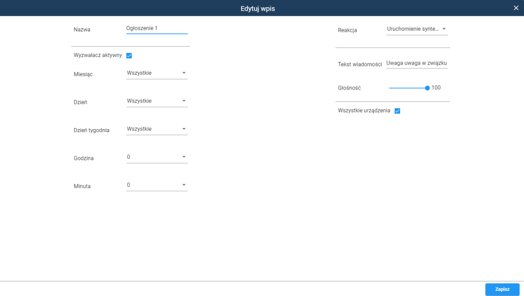 Teraz możesz ustawić harmonogram ich automatycznego uruchamiania o wyznaczonych godzinach na wybranych punkach alarmowych.